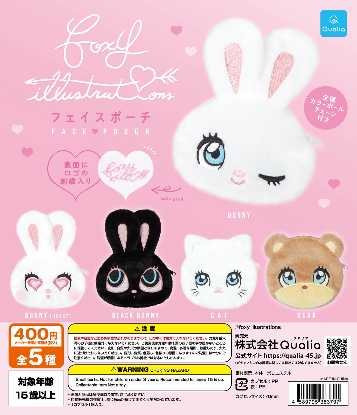 【フォクシー イラストレーションズ フェイスポーチ】🐰🐱🐻