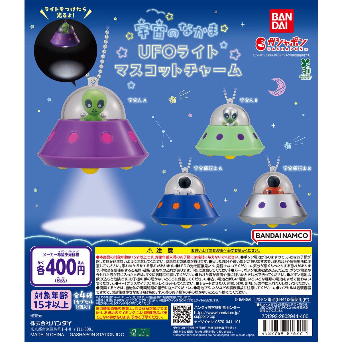 【宇宙のなかま UFOライトマスコットチャーム】👽